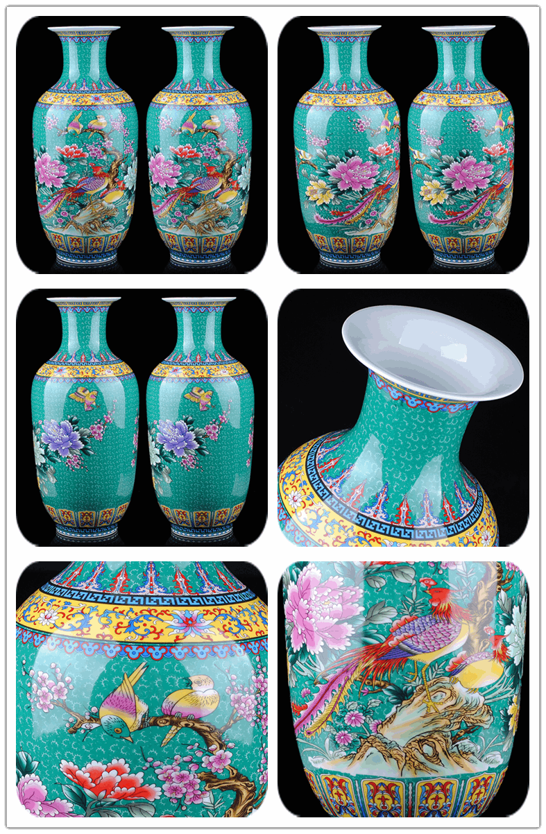 RZCK Shadow Green Glazed Double Ear Ceramic Vase Antique Chinese Living Room Desktop Decorations
