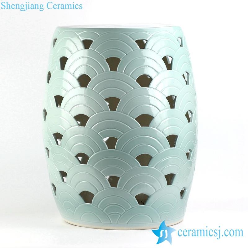 Hot sale mint green ocean feeling scale engraved pattern pierced bathroom unique ceramic stool