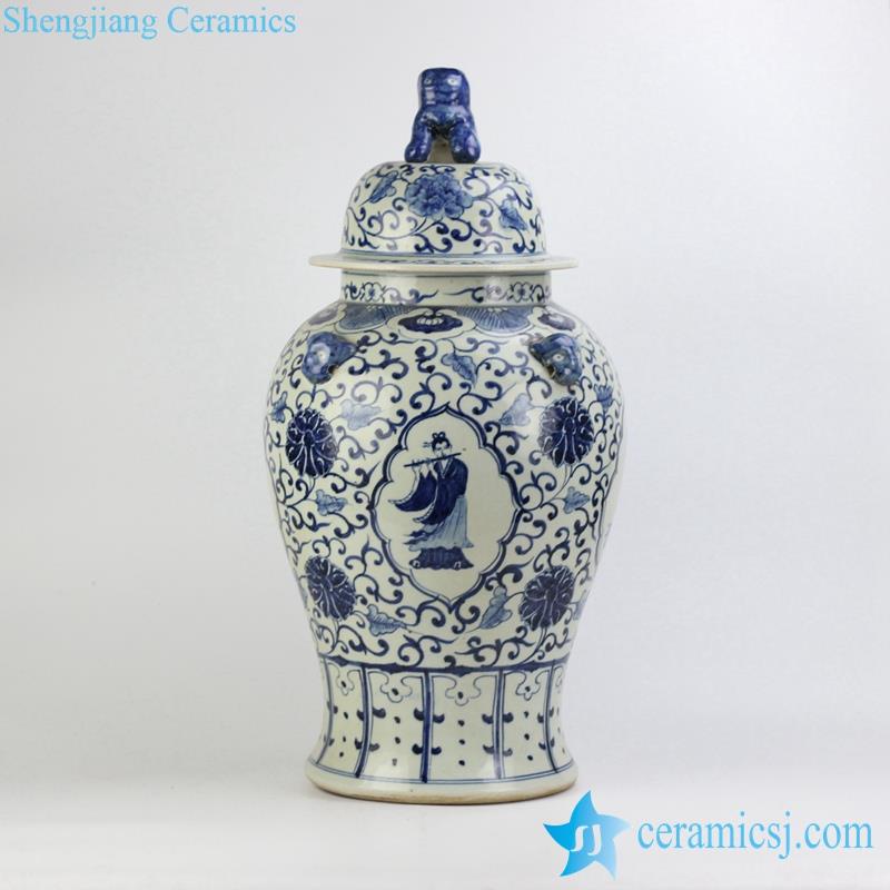 vintage feel floral pattern lion knob cap ceramic ginger jar