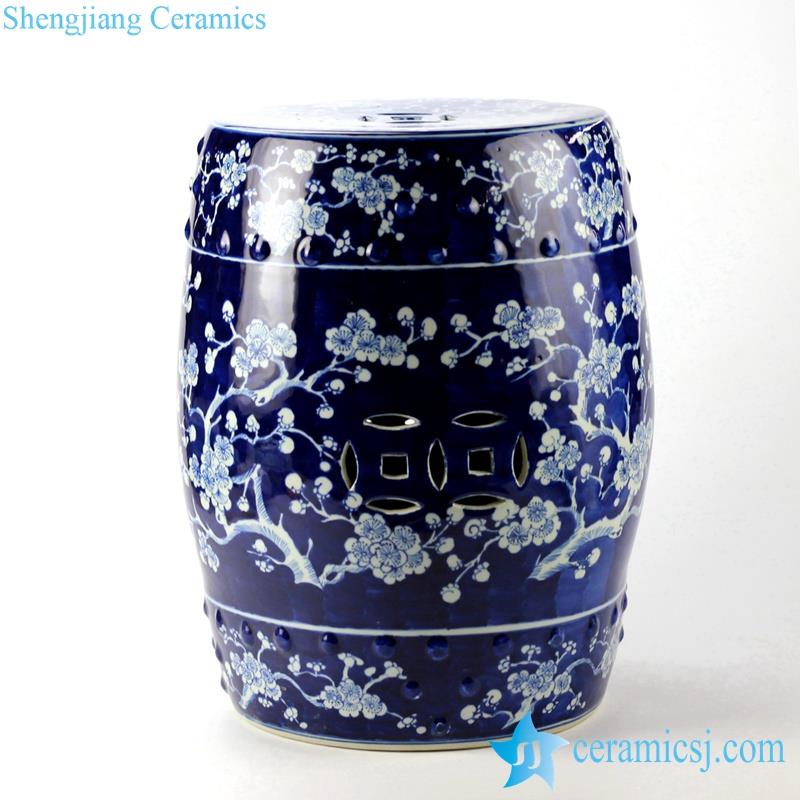 Blue and white high quality hand paint winter sweet pattern ceramic Asian barrel stool