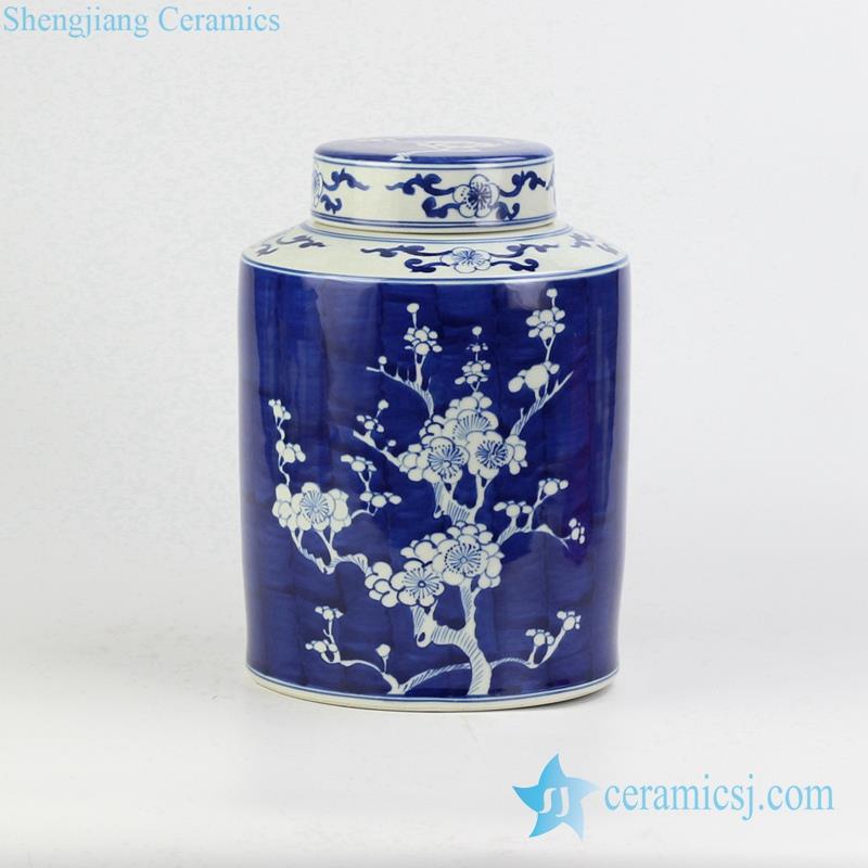Blue and white flat lid winter sweet pattern wholesaler price china canister jar