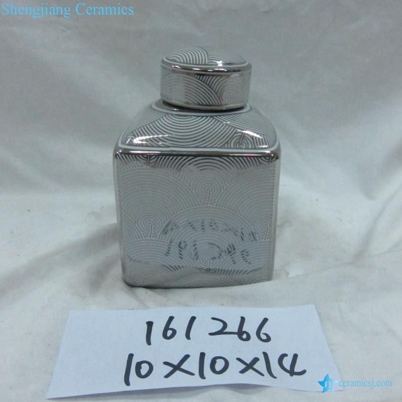 Silver curvy line pattern triangular ceramic jar