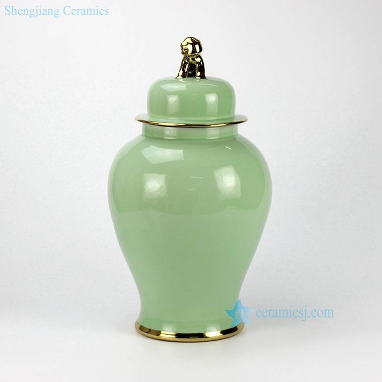 Made in China turquoise ground glaze gold line and knob porcelain vase jar