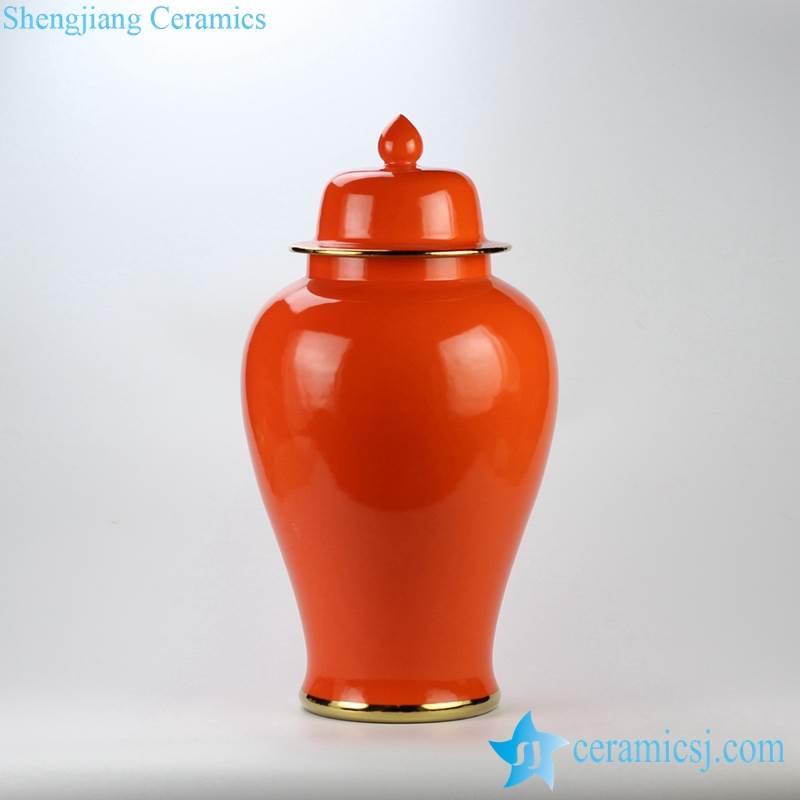 Clementine orange color golden line glided ceramic temple jar for online sale