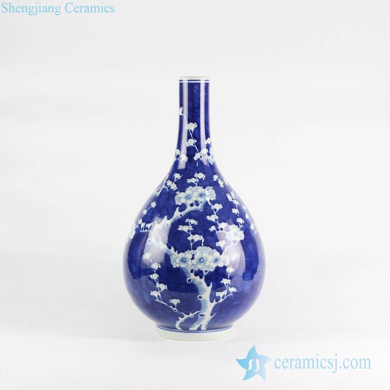 Big water drop shape plum blossom pattern blue and white bud porcelain vase in bulk to sell