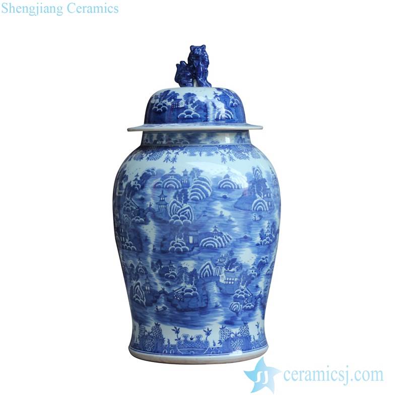Blue and white lover collection landscape pattern and foo dog lid design delft tall ceramic ginger jar