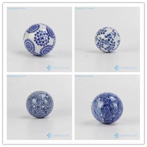 Different floral pattern cute blue and white ceramic Christmas balls |