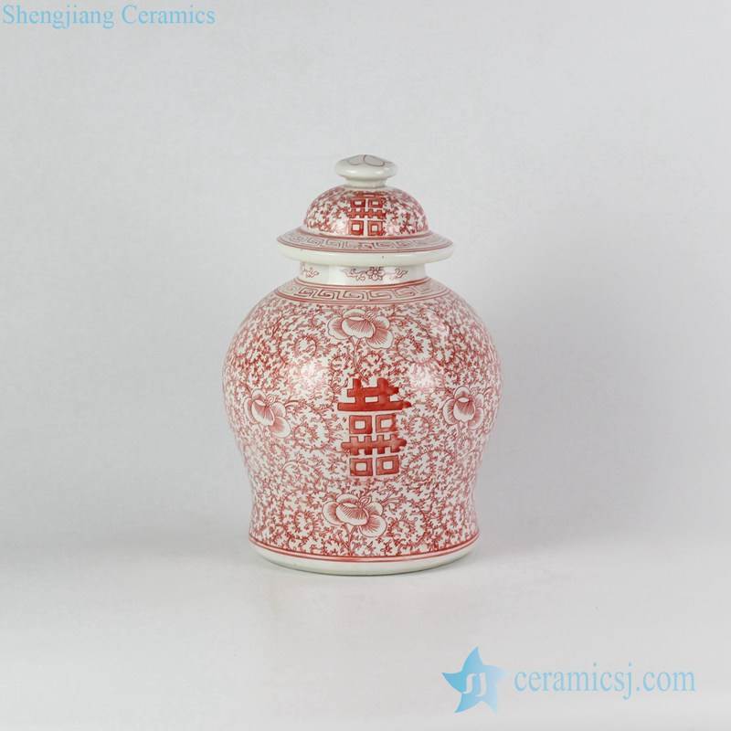 red pigment painting Chinese traditional wedding letter double happiness ceramic sundry jar
