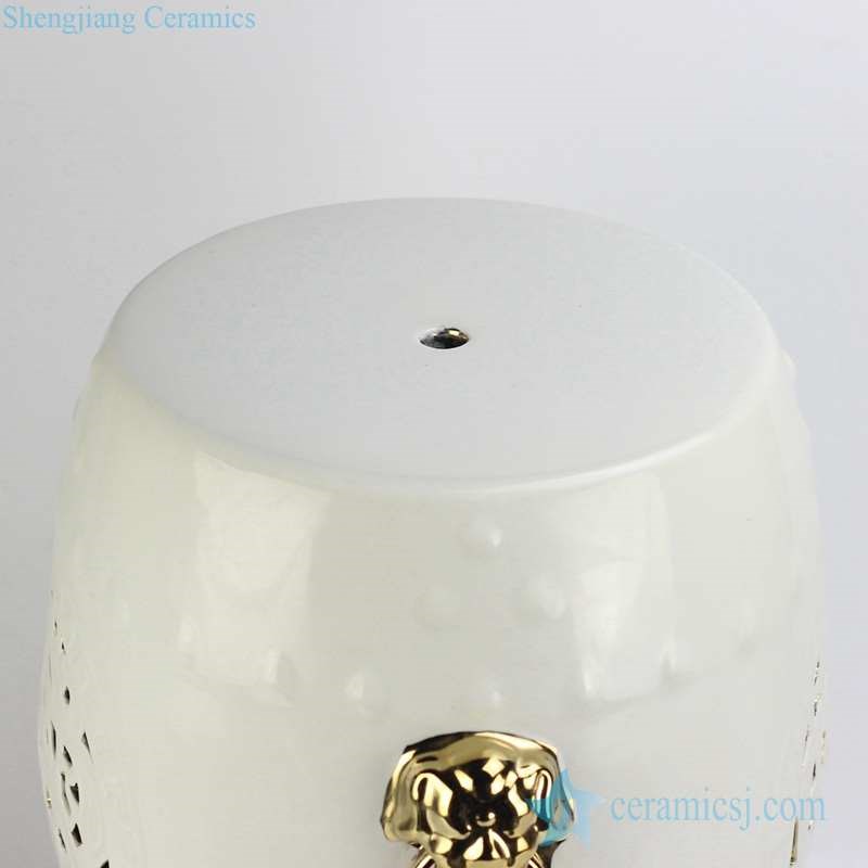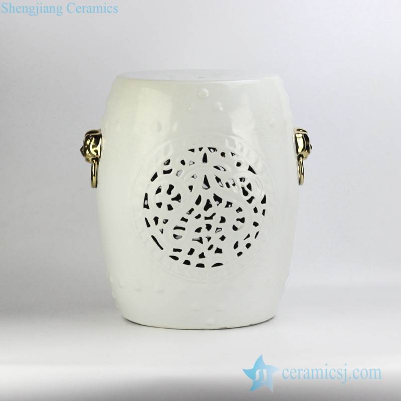 Popular export item white glaze golden lion handle unique design ceramic stool
