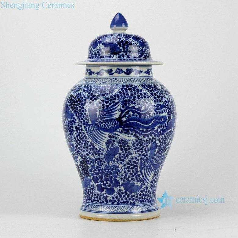 Blue and white hand paint phoenix pattern ceramic interior design jar