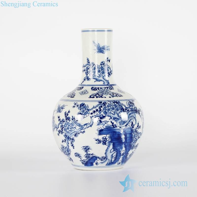 Chinoiserie hand drawing bird floral chinaware globular shape vase