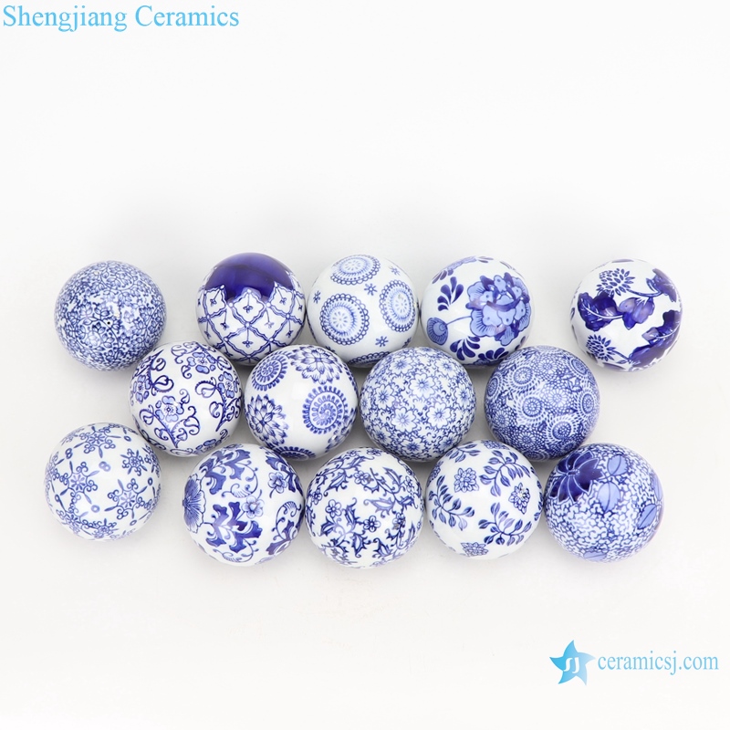 RYPU23-D8 Jingdezhen Blue and white flower pattern ceramic ball decorative ball round float ball