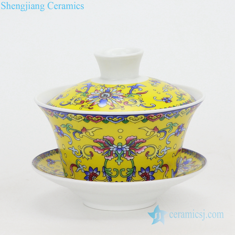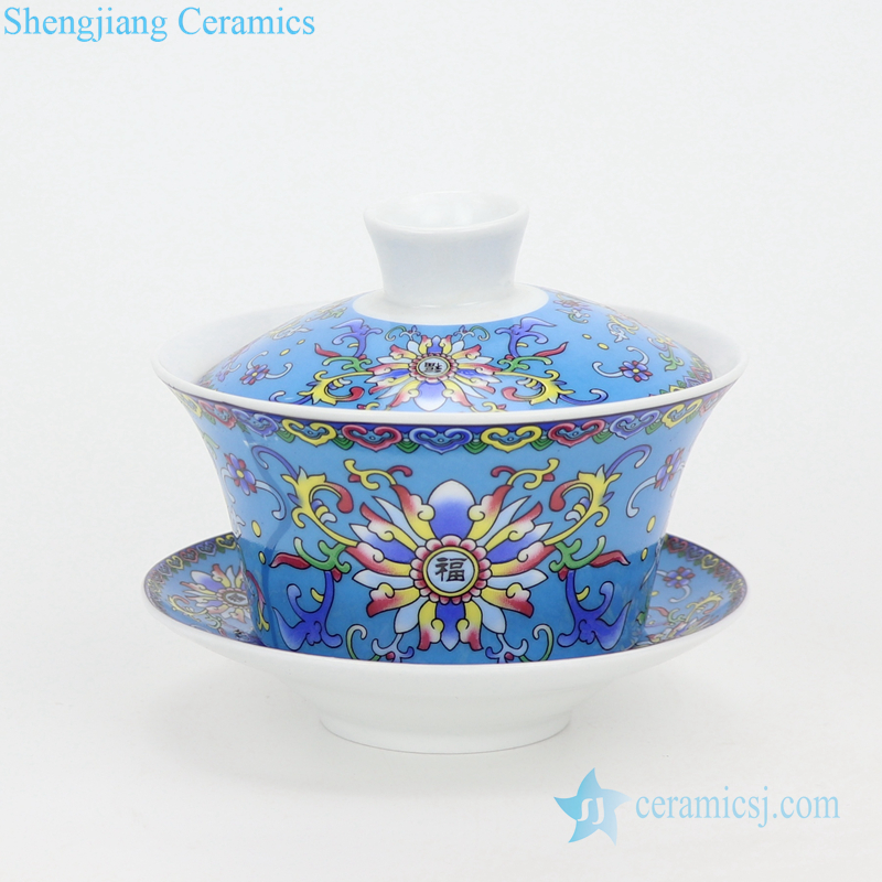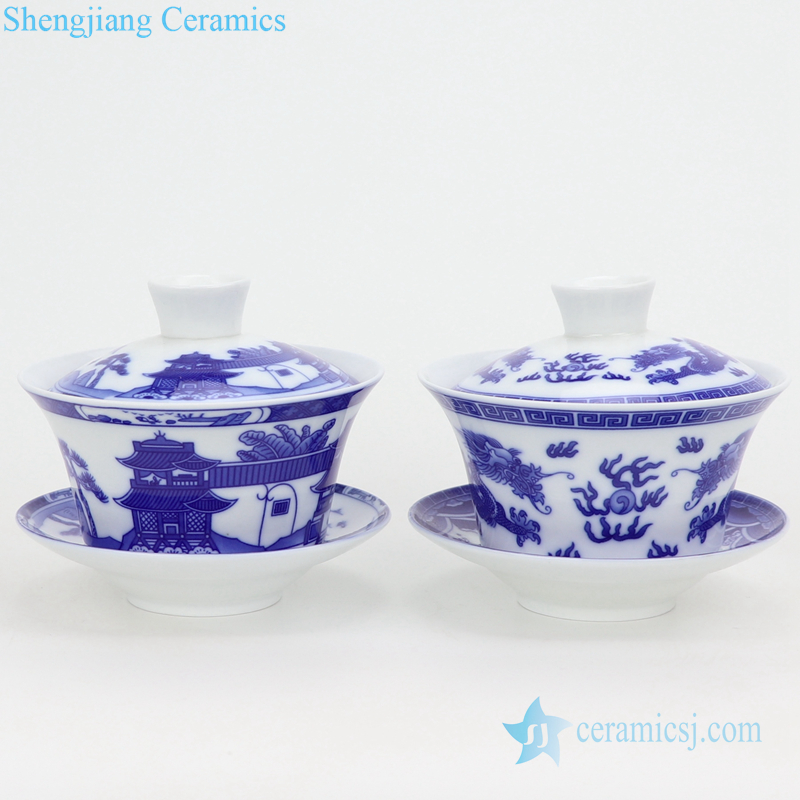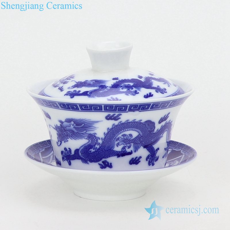 RYYY38 Large temperature white porcelain blue flower peony kung fu tea set with three bowls