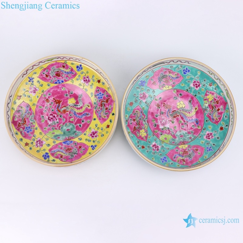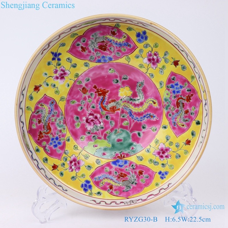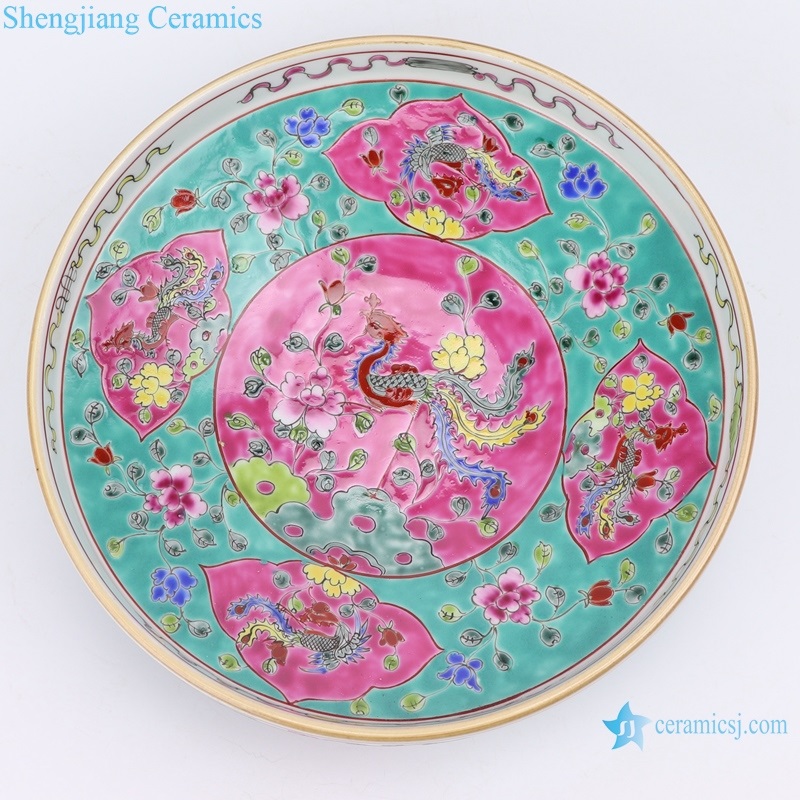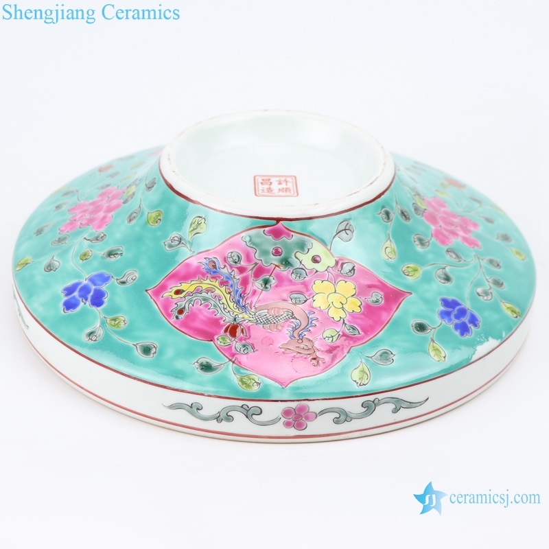 RYZG30-AorB Xu shunchang to prevent the ancient qing dynasty painted pastel green phoenix grain high-foot fruit bowl