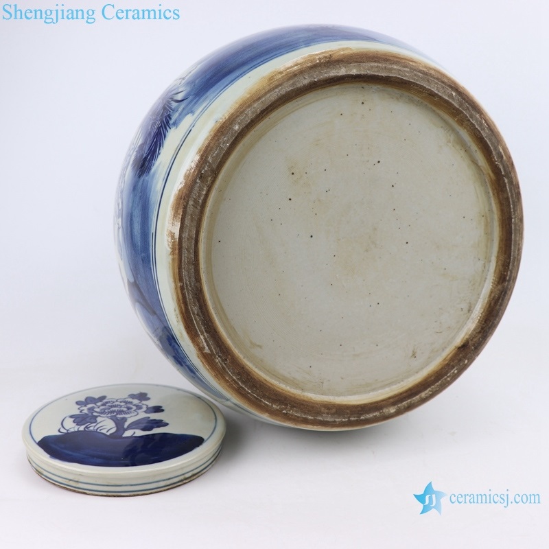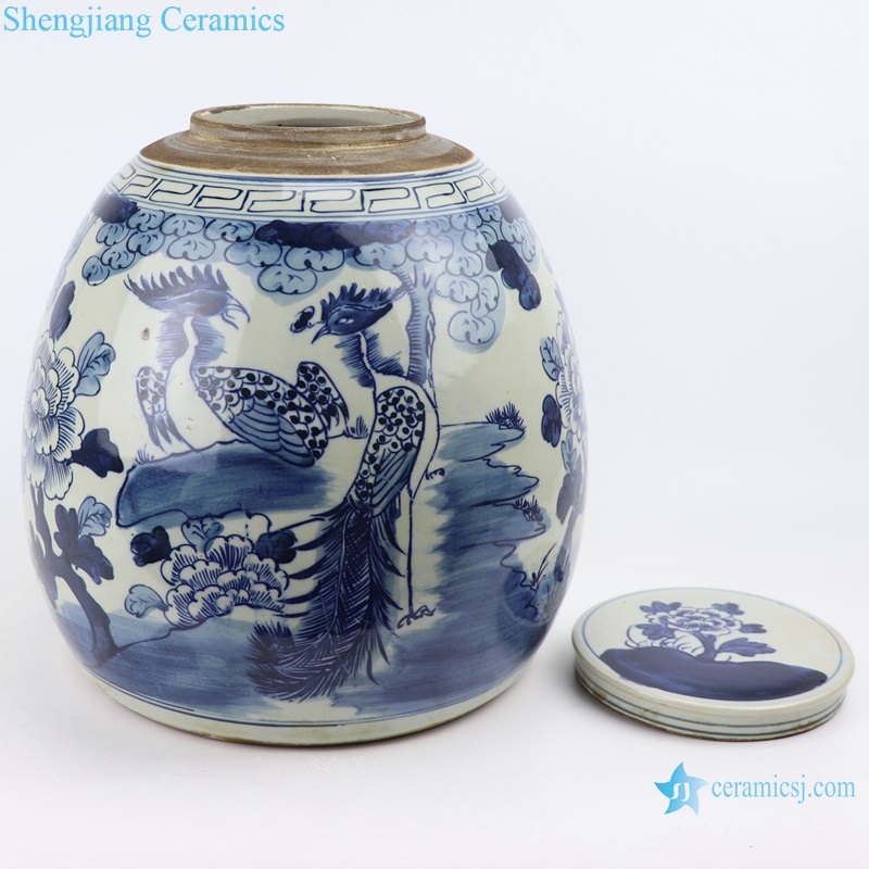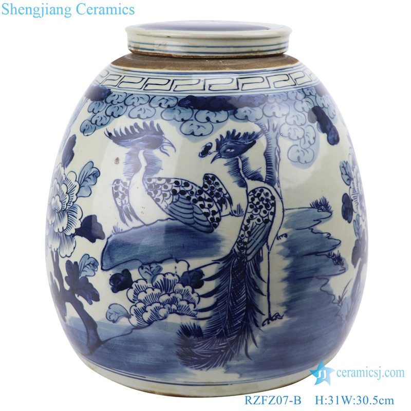 RZFZ07-BorC Archaize hand-painted blue and white flowers and birds double phoenix jar |