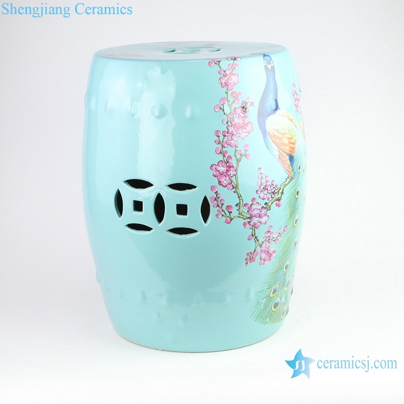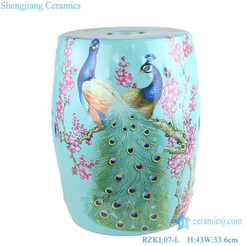 RZKL07-L Color glazed porcelain stool cool pier peacock birds light green birds |