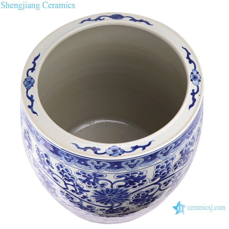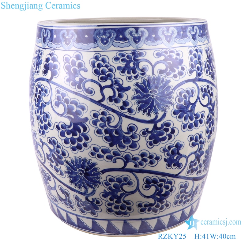 RZKY25 Antique hand-painted porcelain bound lotus flower into grape grain drum vats
