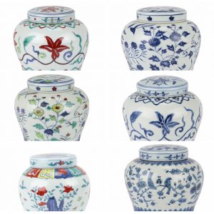 Blue & white, famille rose, color reactive glazed, golden & silver plated, copper, or as Panton color customized color.