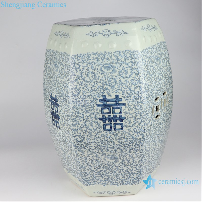RYVM39 Blue and white wrapped branch happiness word pattern six directions ceramic stool