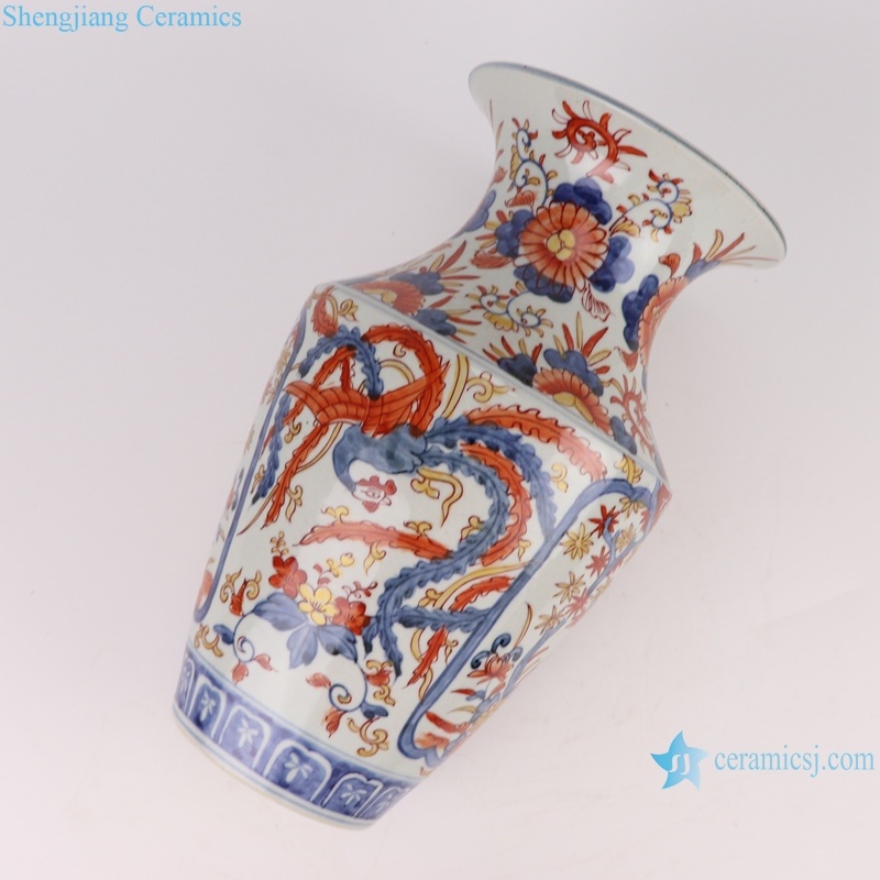 RZQF02 Jingdezhen hand painted doucai phoenix pattern maple leaf shape ceramic jar