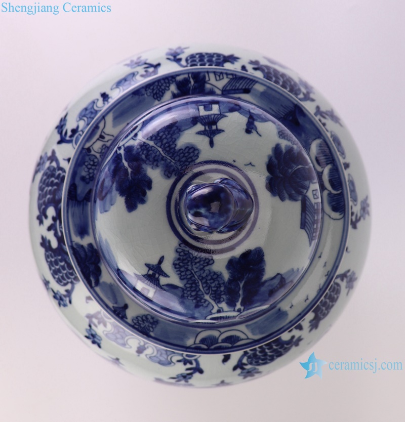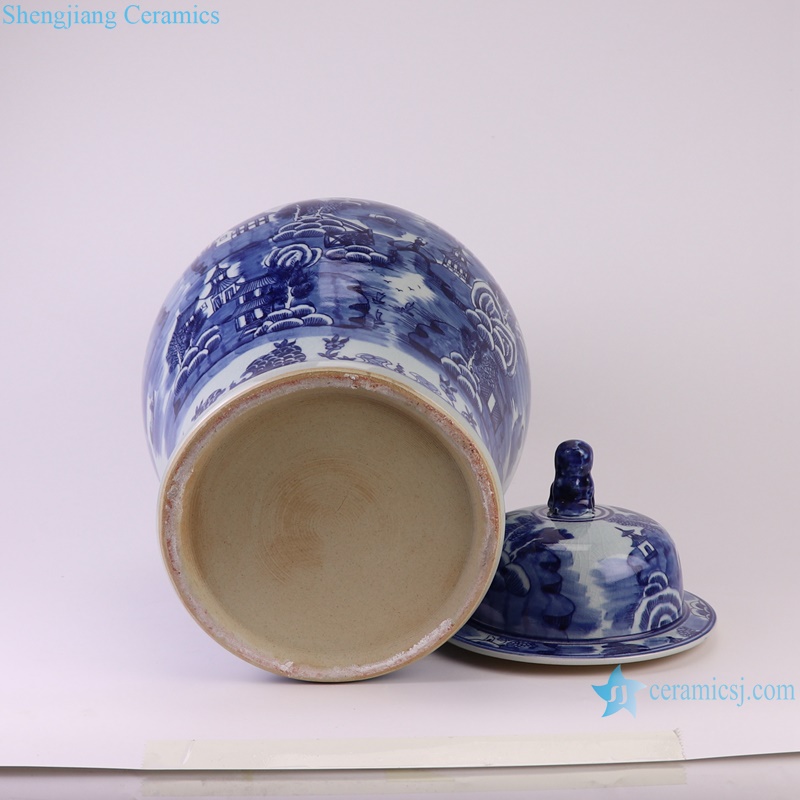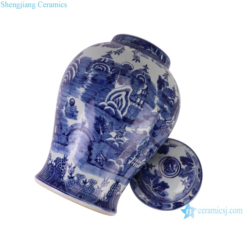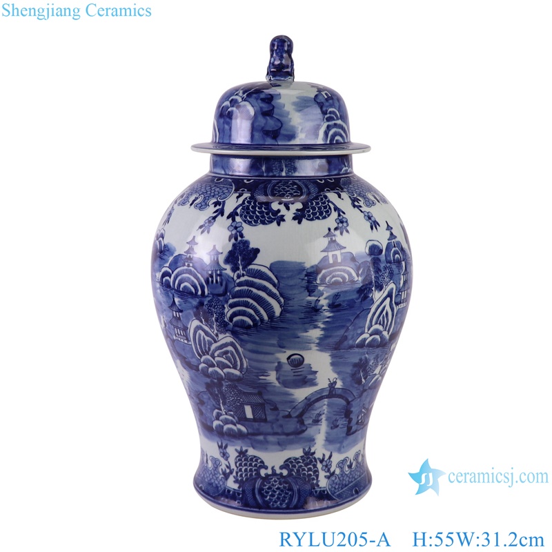 RYLU205-A hand painted blue and white Chinese parasol tree and landscape pattern ceramic temple jar