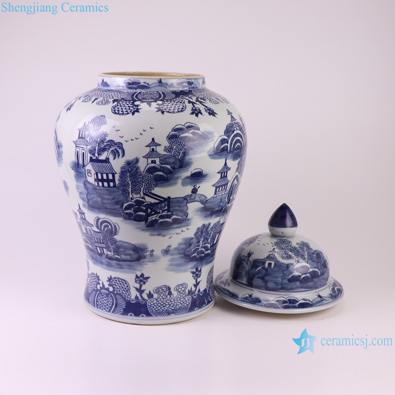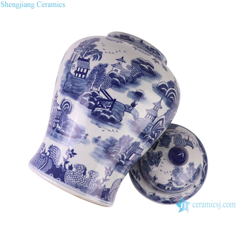RZSI47-A high quality hand painted blue and white landscape pattern ceramic porcelain jar