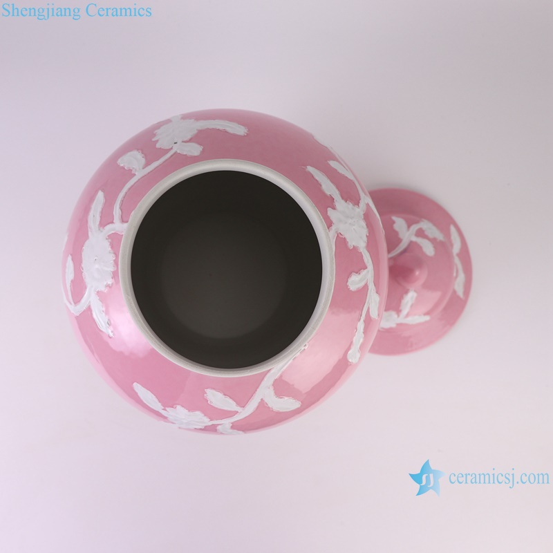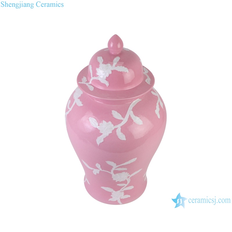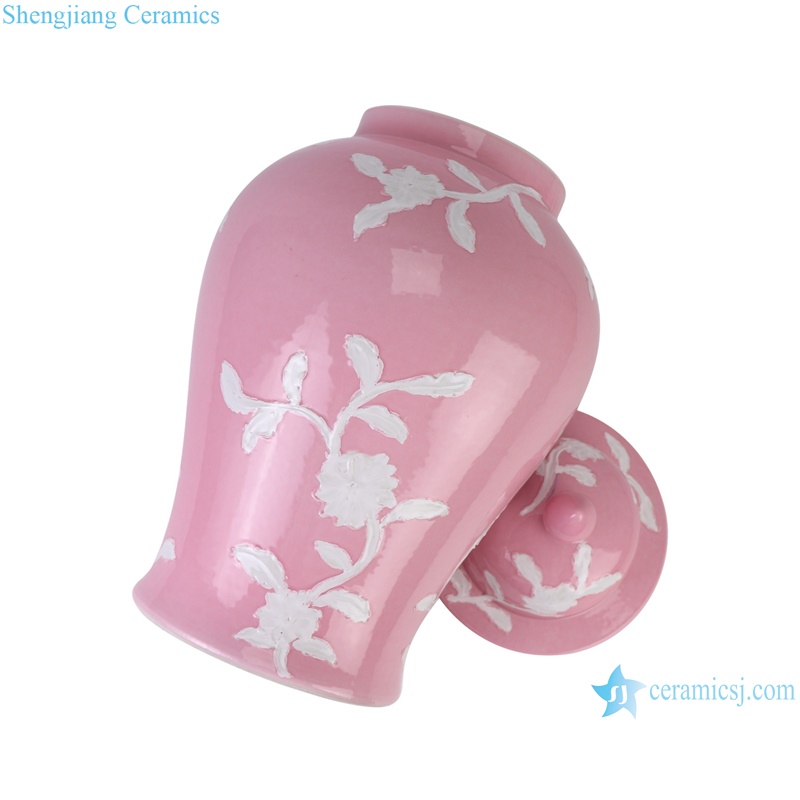 RYNQ279 new beautiful pink ground white flower pattern medium size porcelain jar