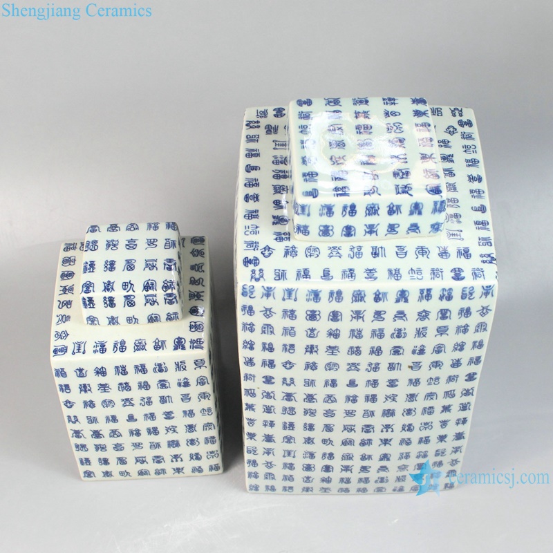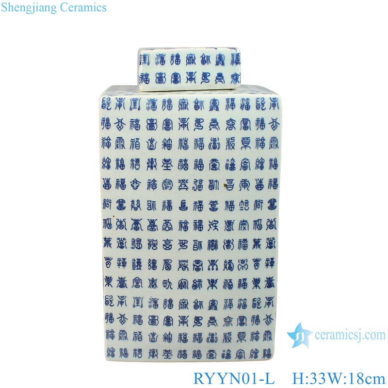 RYYN01-L-S Blue and white Fulu Shou words big and small size porcelain square pot