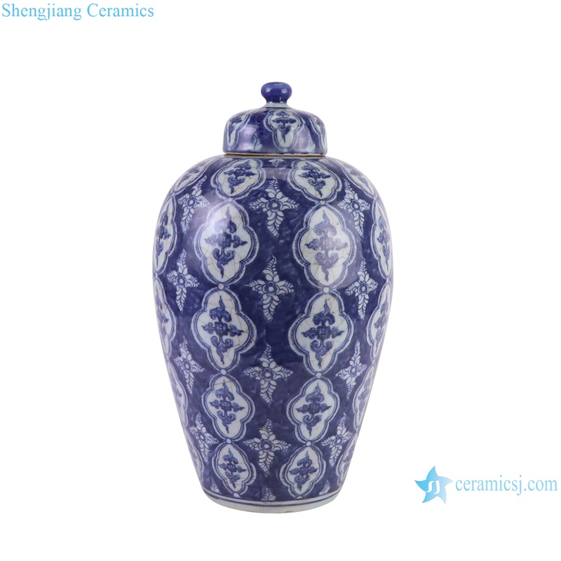 RZKJ21-A chinese blue and white double flower pattern porcelain jar for home decoration