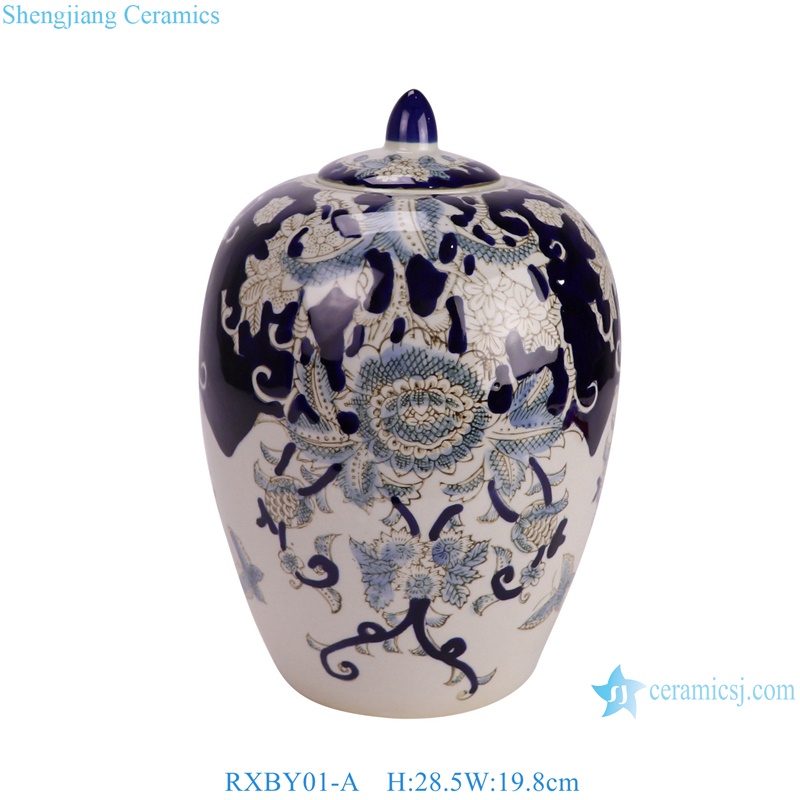RXBY01-A new low price beautiful blue and white floral pattern wax gourd shape ceramic jar