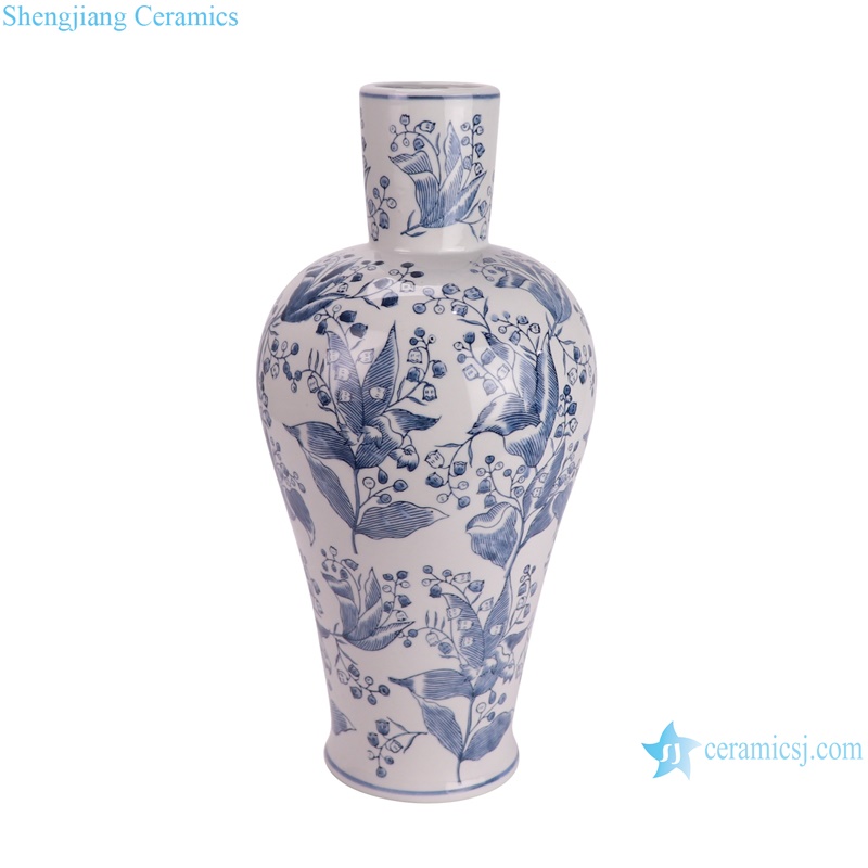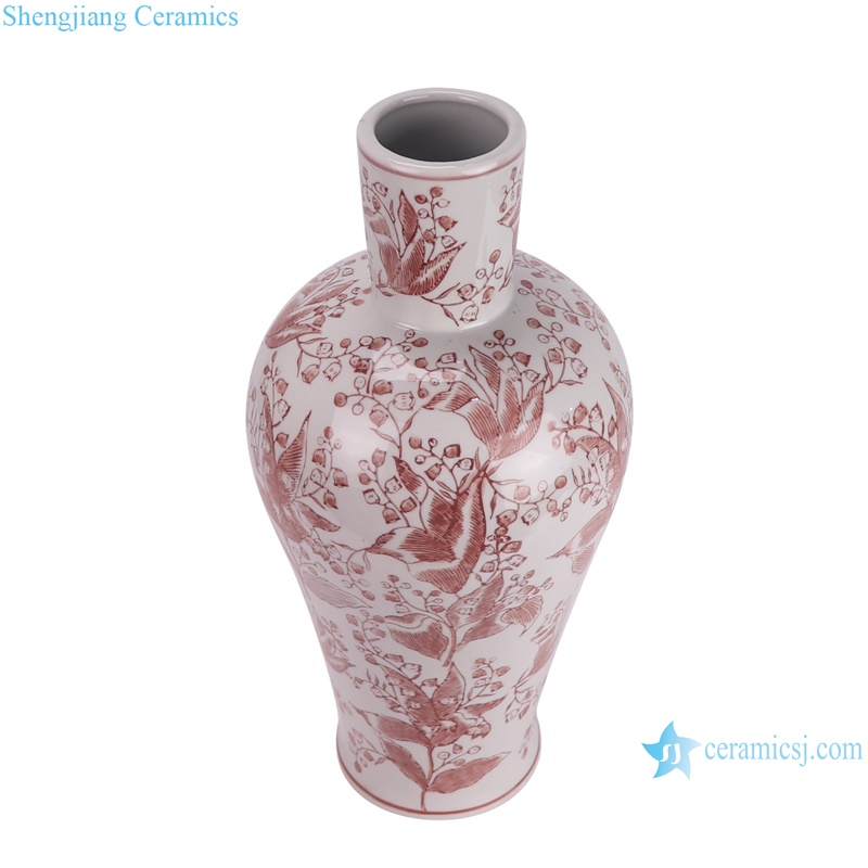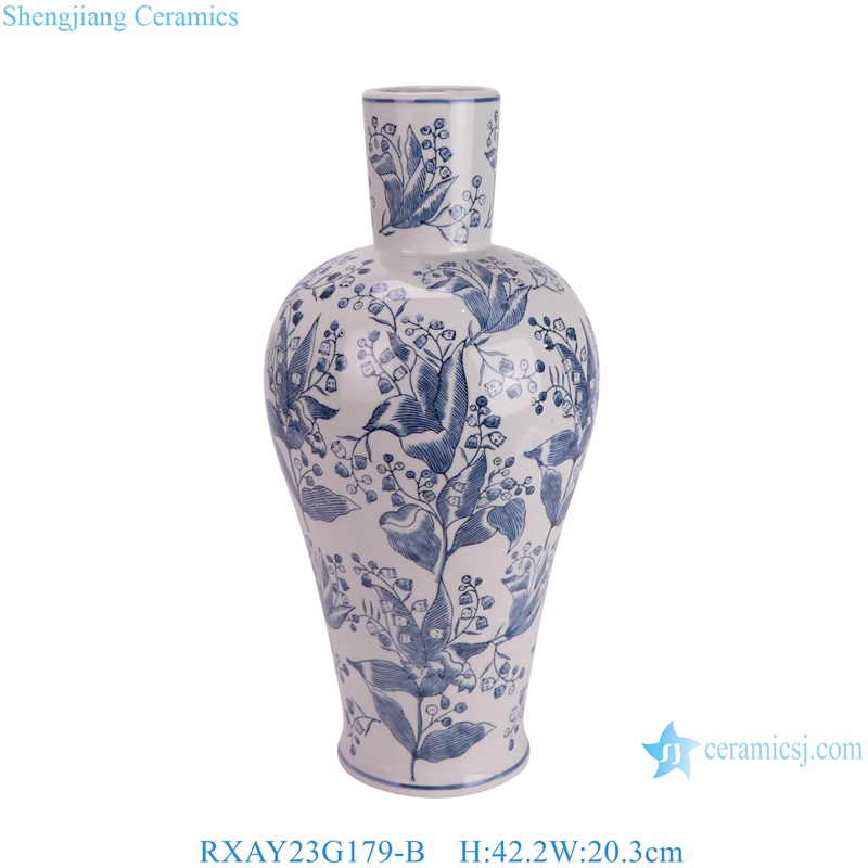 RXAY23G179-B/RXAY23G163 Modern Style Red Long Neck leaf pattern Chinese blue and white Ceramic Flower vase