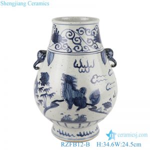 RZPJ03-B-L high quality blue and white hand painted landscape pattern big size bowl for garden