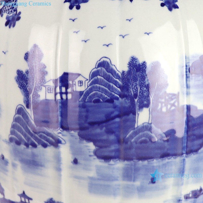 RZOY42-A high quality blue and white hand painted big size ceramic vase for home decoration