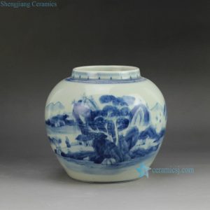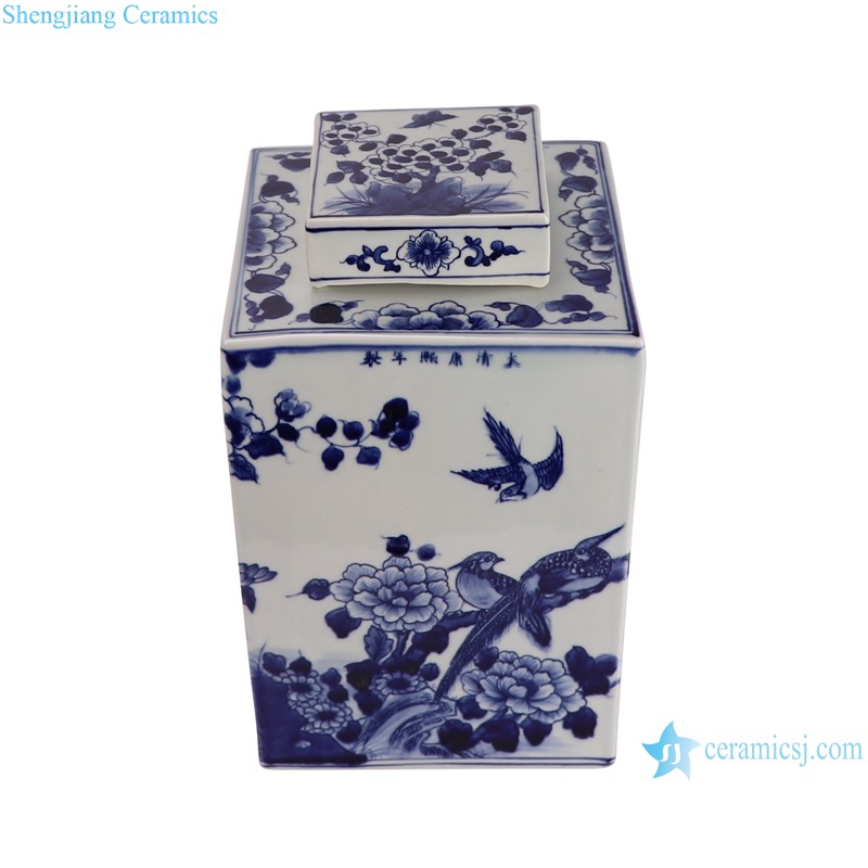 RYUK15-F beautiful hand painted blue and white square ceramic lidded jar for home decoration