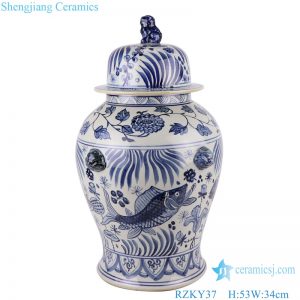 RXAE series blue and white beautiful floral pattern ceramic lidded jar for home decoration