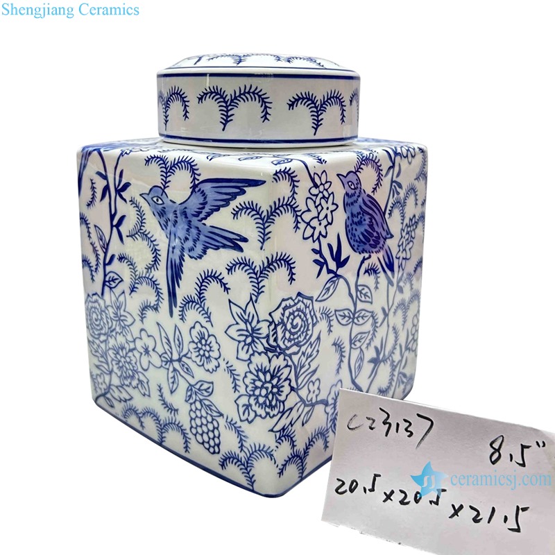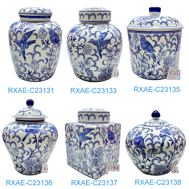 RXAE series blue and white floral and bird pattern ceramic ginger jar for home decoration