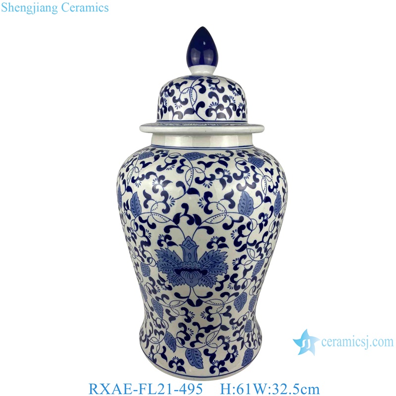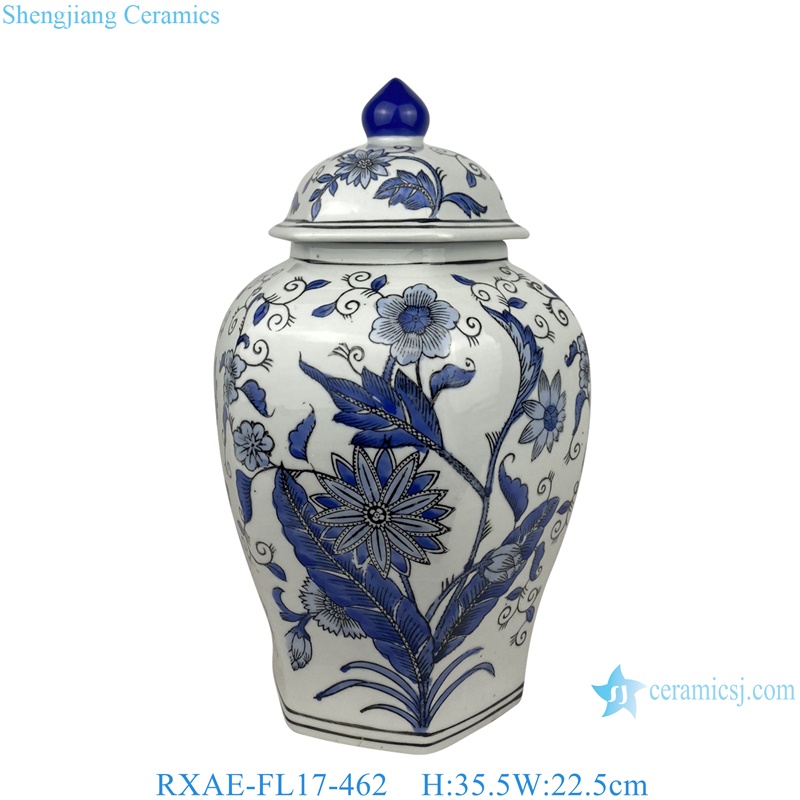 RXAE series blue and white beautiful floral pattern ceramic lidded jar for home decoration