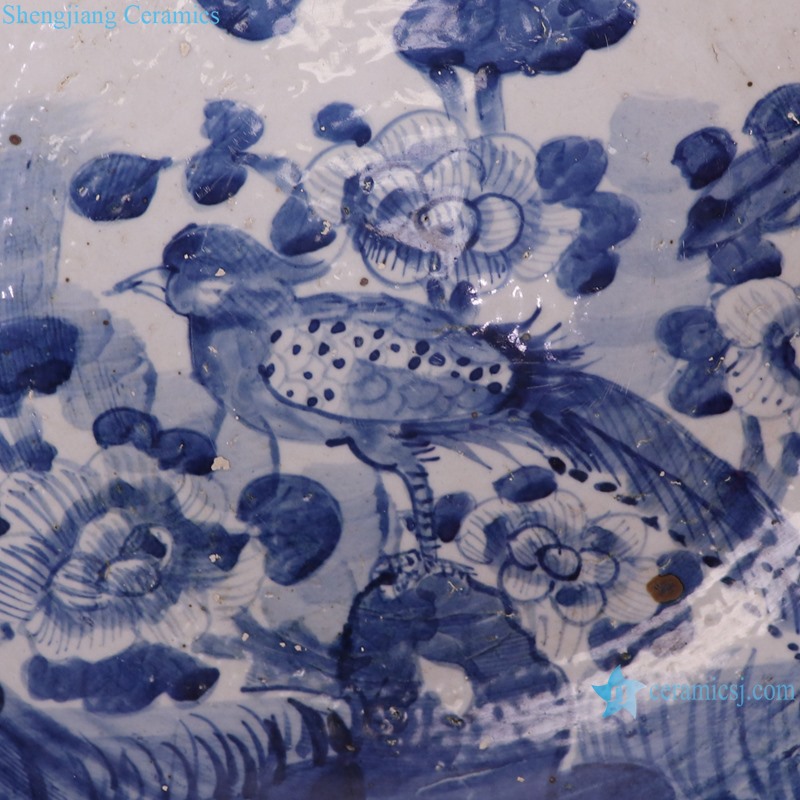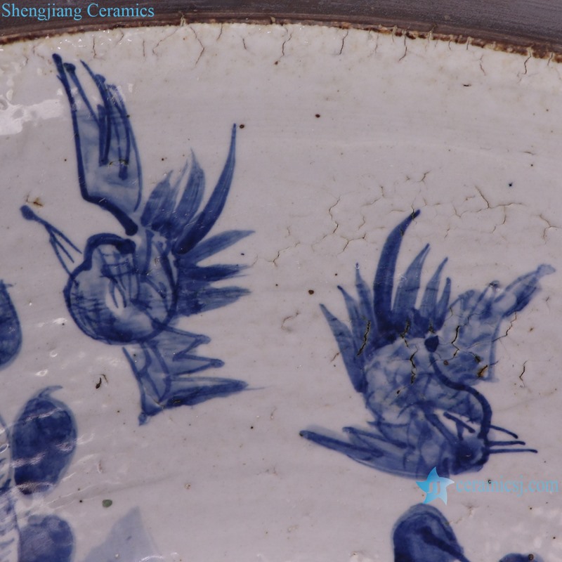 RZEY17-A-G hand painted blue and white wide rim big size ceramic bowl planter