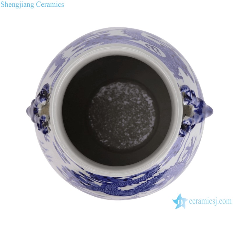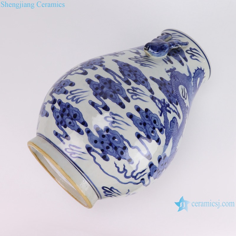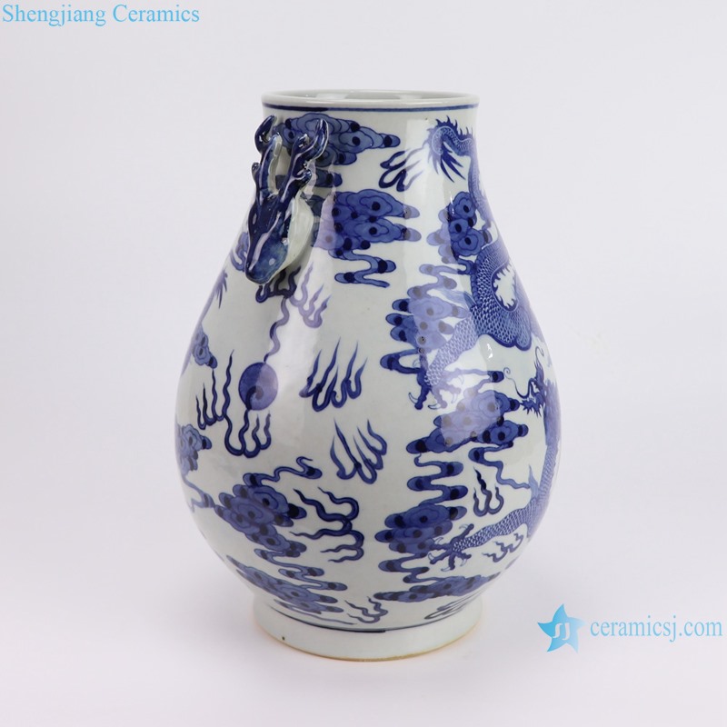 RZCM11-A Qing dynasy Guangxi period blue and white dragon pattern ceramic vase with two ears for home decoration