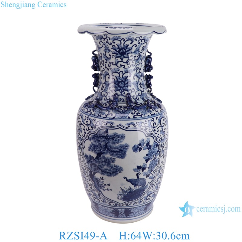 RZSI49-A 26inch blue and white big size interlocking brach with pine tree and crane pattern ceramic vase for home decoration