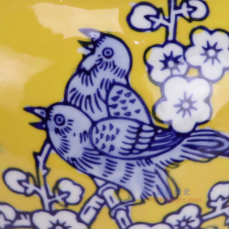 RZTO55-A yellow background blossom and bird pattern ceramic temple jar for home decoration