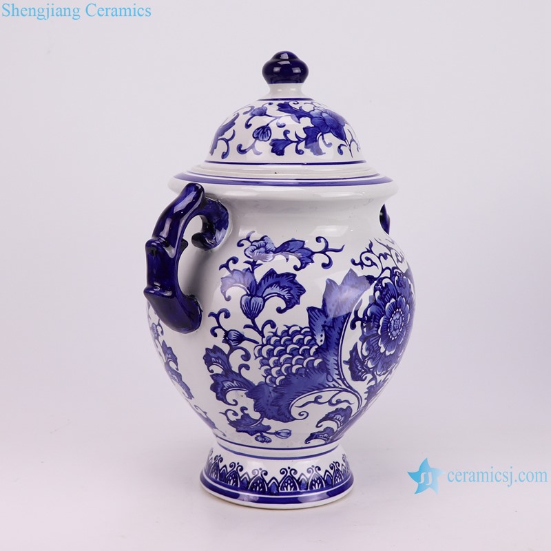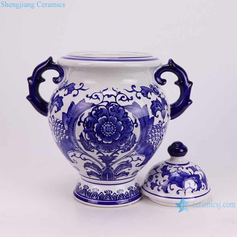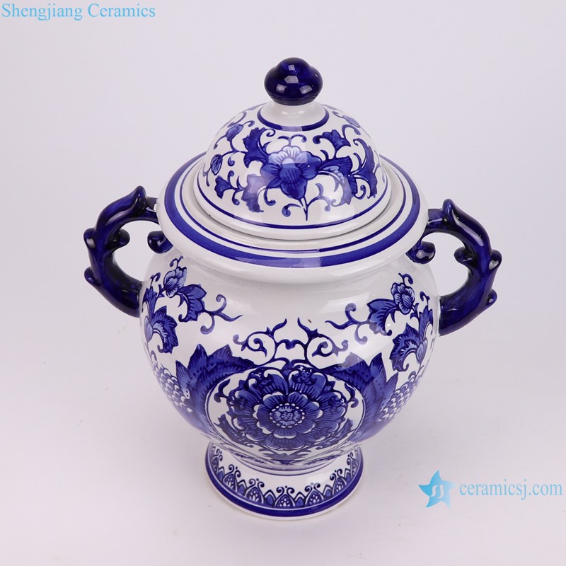 RXCE-BW8332 Blue and White Flower Pattern Double Ears Lidded Jar for home decoration