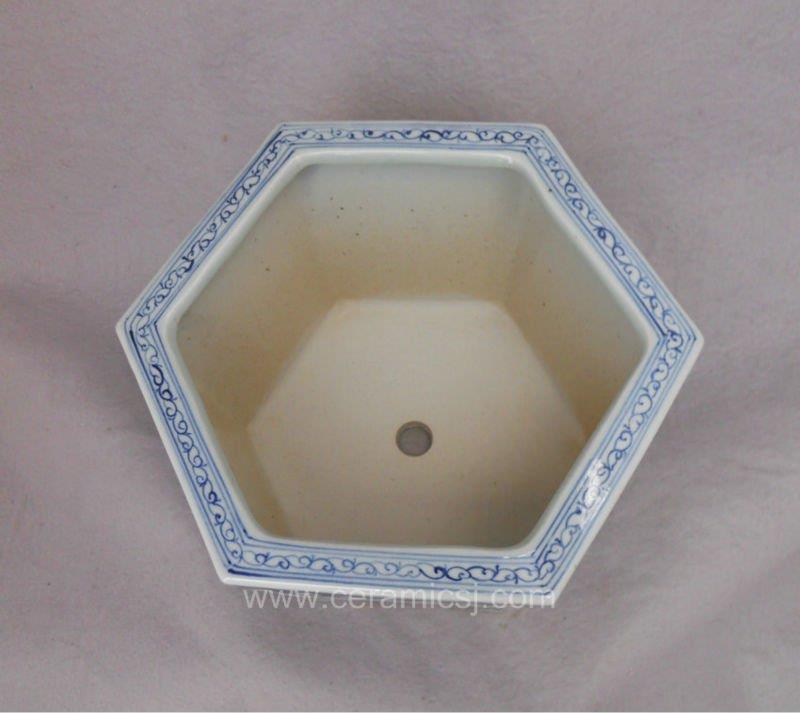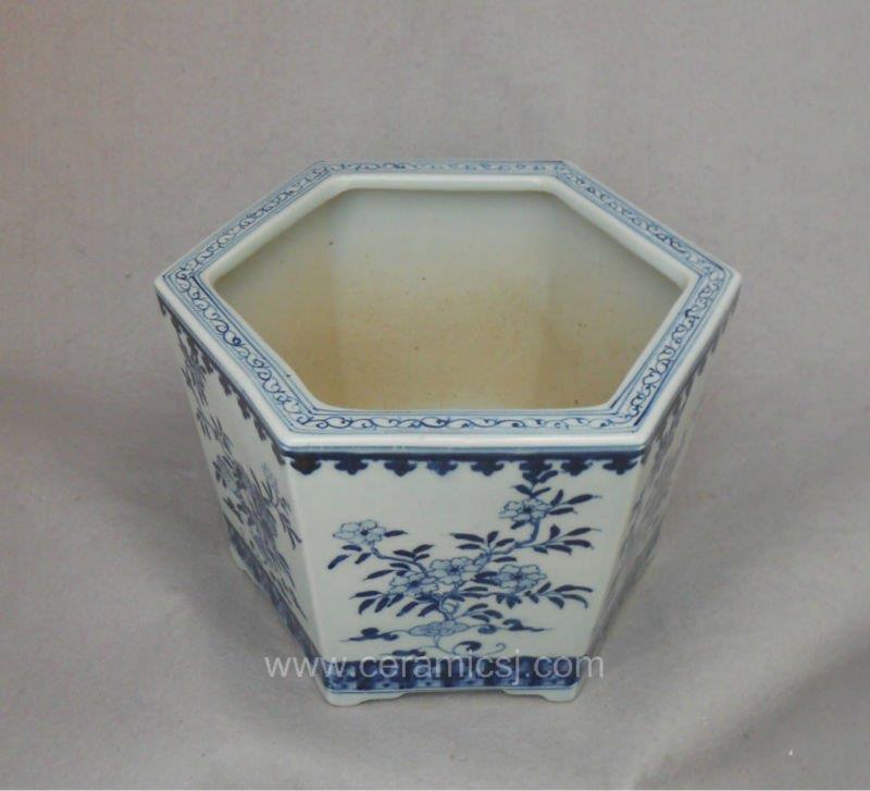 Antique blue white ceramic hexagon Flower Pot WRYSZ04