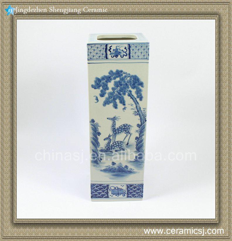 | Description: | Blue and White vase, Tall squre, pine tree and deer design, hand painted, under glazed, high temperature fired |
