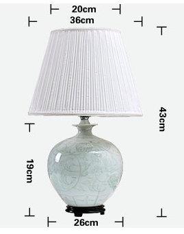 DS34-DB Pleated fabric shade jade glaze ceramic beside table modern lamp