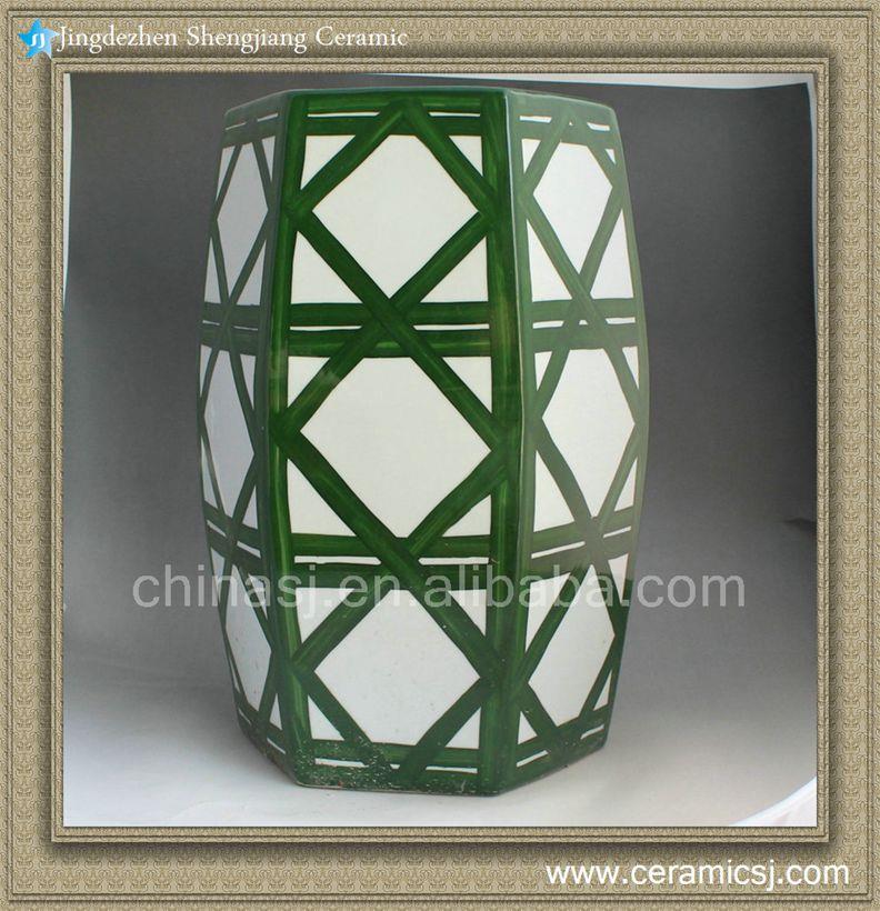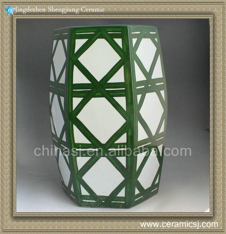 Green hand painted Ceramic Outdoor end table Stool |