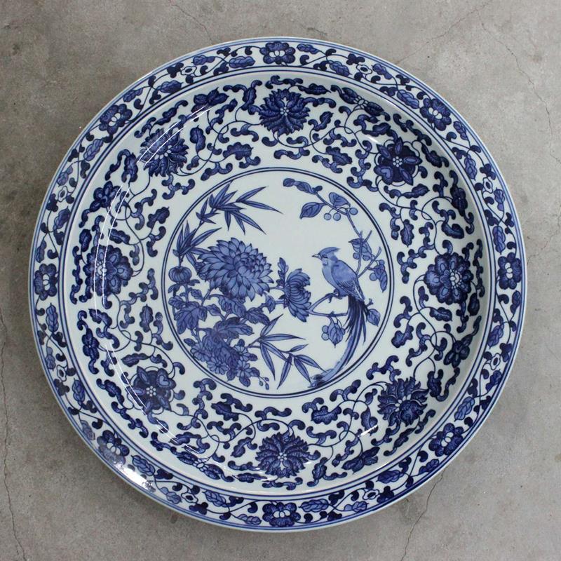 | Description: | hand painted blue white chrysanthemum and bird porcelain plate |