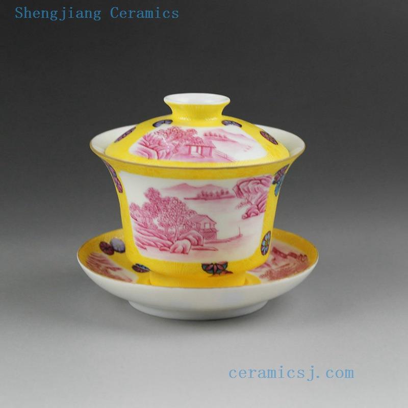 Jingdezhen hand made needle painting porcelain Gaiwan, floral, bird, phoenix, landscape design |