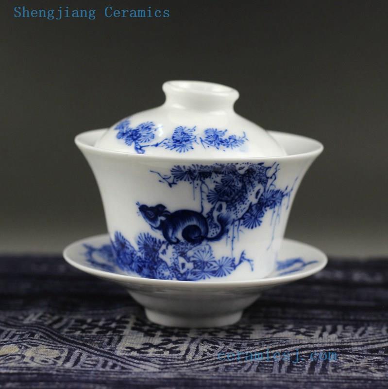 | Description: | Jingdezhen hand made painted blue white porcelain Gaiwan, floral, butterfly, squirrel, peach, Beijing opera face design |