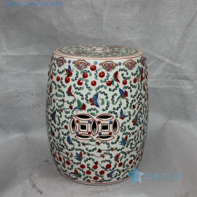 | Description: | Famille rose white floral butterfly Chinese garden stool |